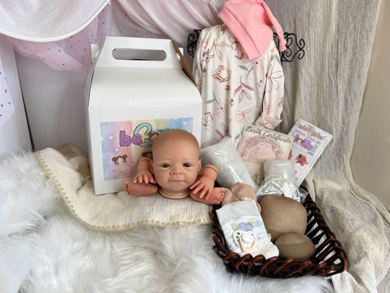 Head - Pre-Weighted Limbs - Cloth Body ~ Polyfill - Weighted Beads - Belly Jelly - Outfit - Diaper ~ Pacifier with Magnets - Birth Certificate & Instructions